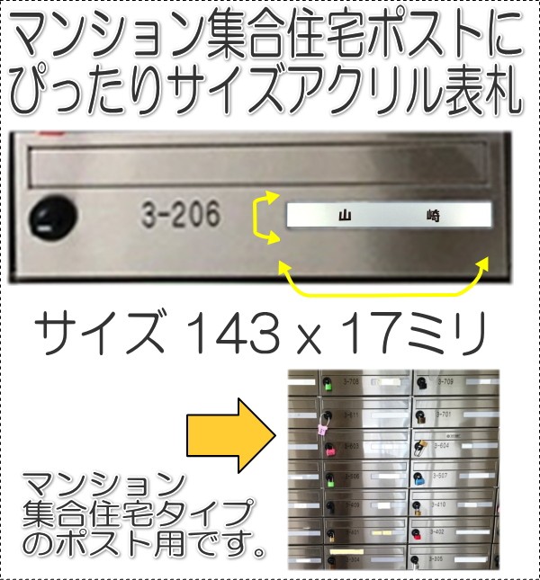 マンション 団地 集合住宅用表札 アクリルプレート SSサイズ143 x 17mm R1004