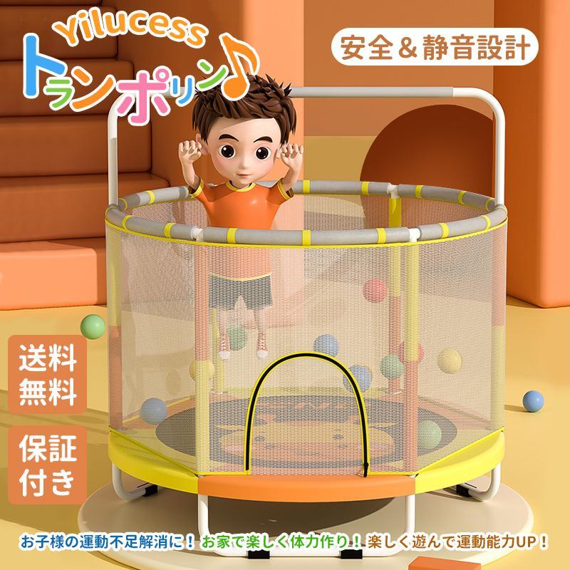 【おしゃれなデザイン】トランポリンから落下を防ぐため、周囲に保護ネットだけでなく、手すりも付いているので、お子様は手すりを握りながら跳ぶことで、中心で安定して飛び跳ねることができます。また、トランポリンの入り口はファスナー式なので、お子様の出し入れがとても楽です。