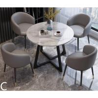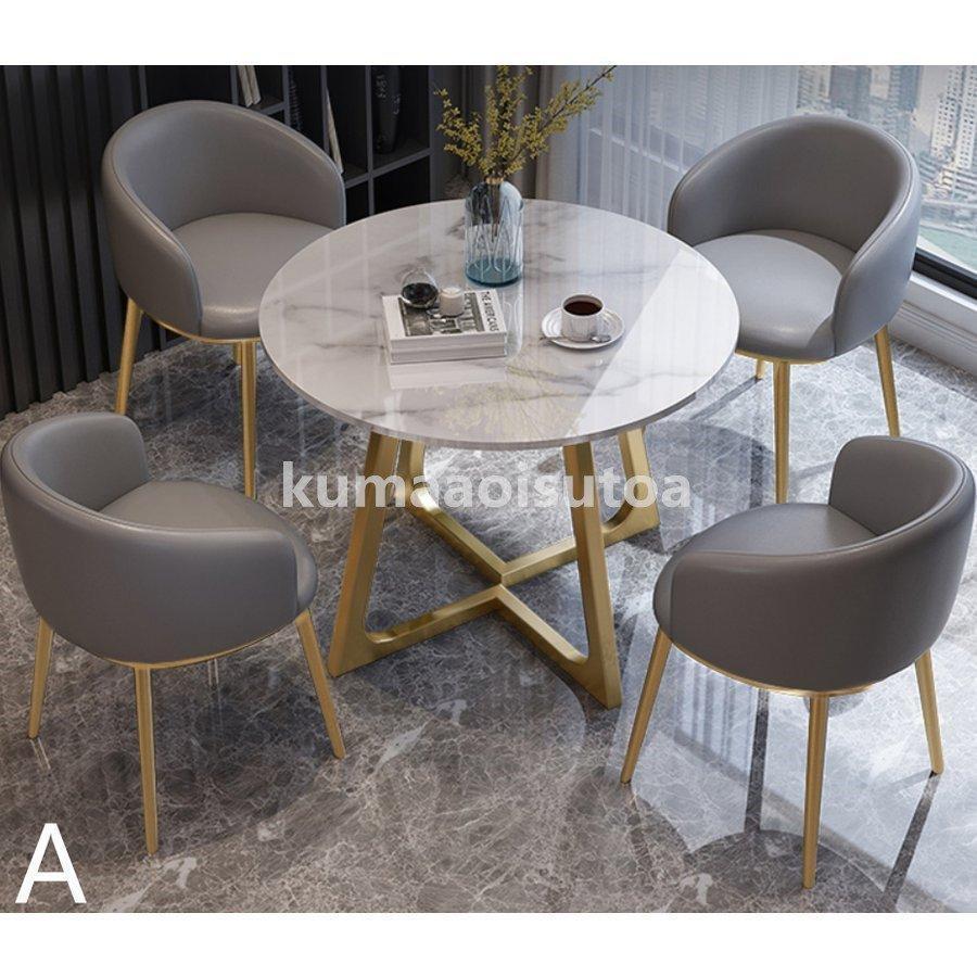 おしゃれ高級テーブル 大理石柄円形デスク 北欧風 会議室 オフィス 打ち合わせ ミーティング 簡易応接 テーブルチェアセット