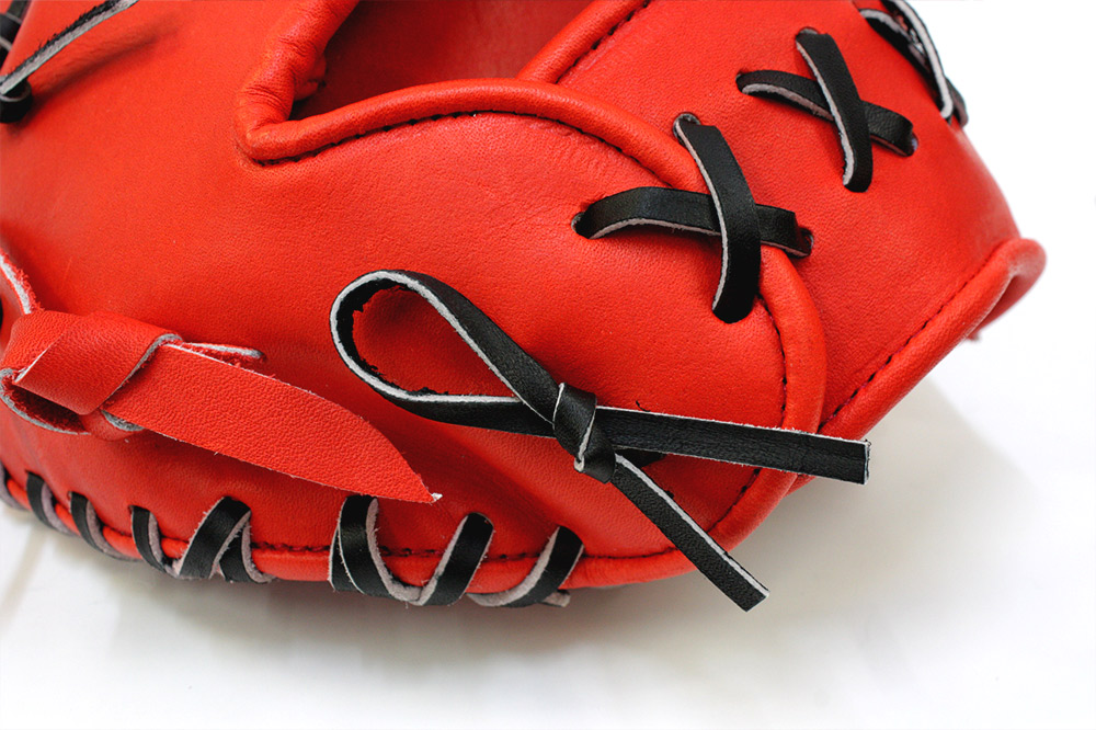 ガッチリとした芯材と張りのあるレザーは高級ミットに負けない仕上がりです。