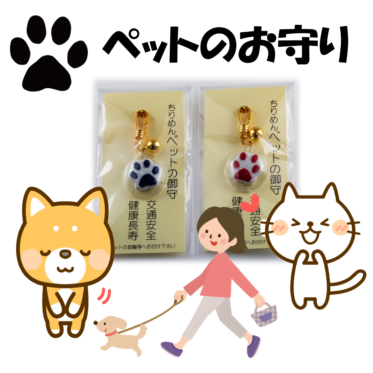 健康長寿、交通安全、迷子にならないように肉球がちりめんで出来ています。
