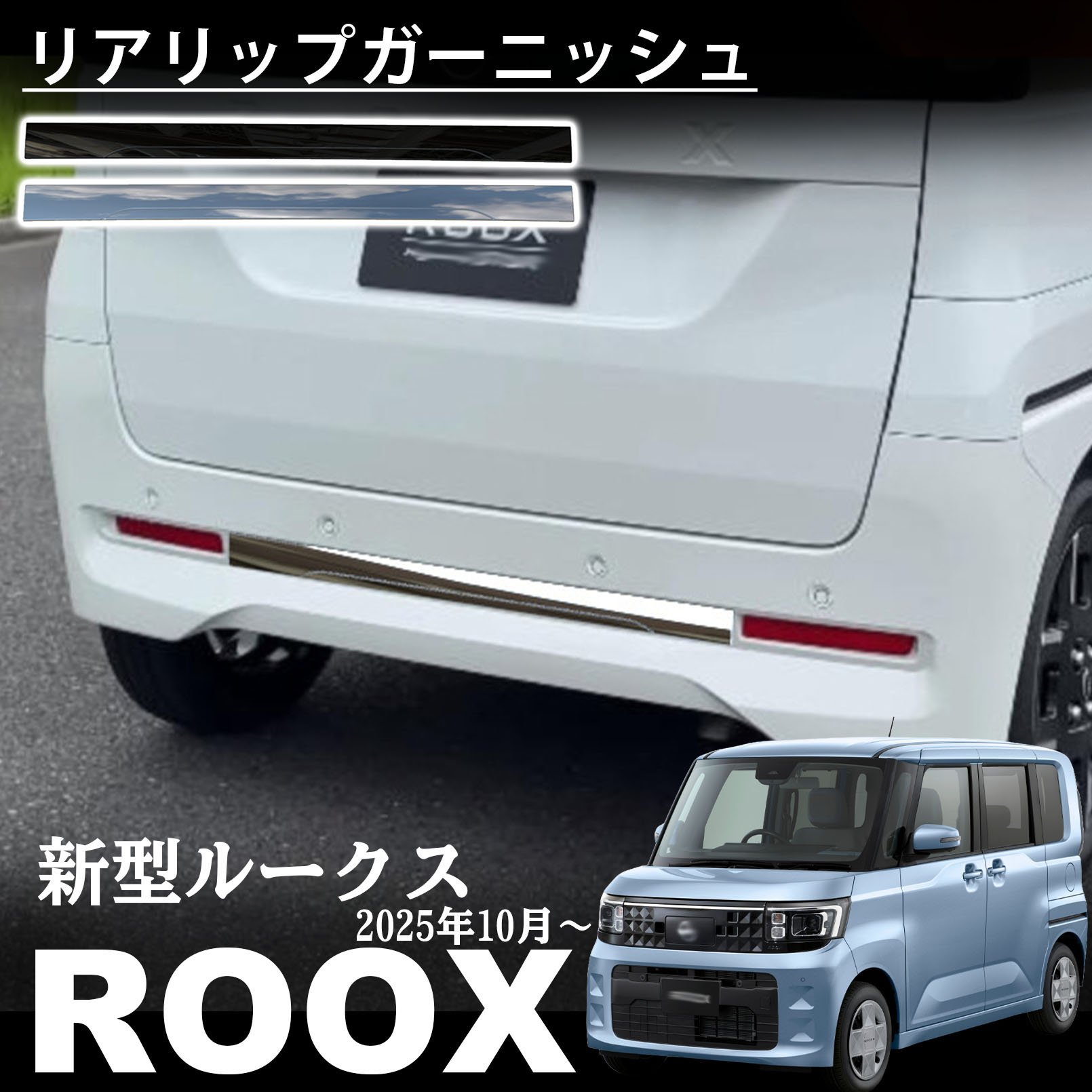 新型 ルークス 2025年10月〜 パーツ リアリップガーニッシュ リヤバンパーガード 外装 カスタム パーツ ドレスアップ アクセサリー エアロ パーツ ROOX