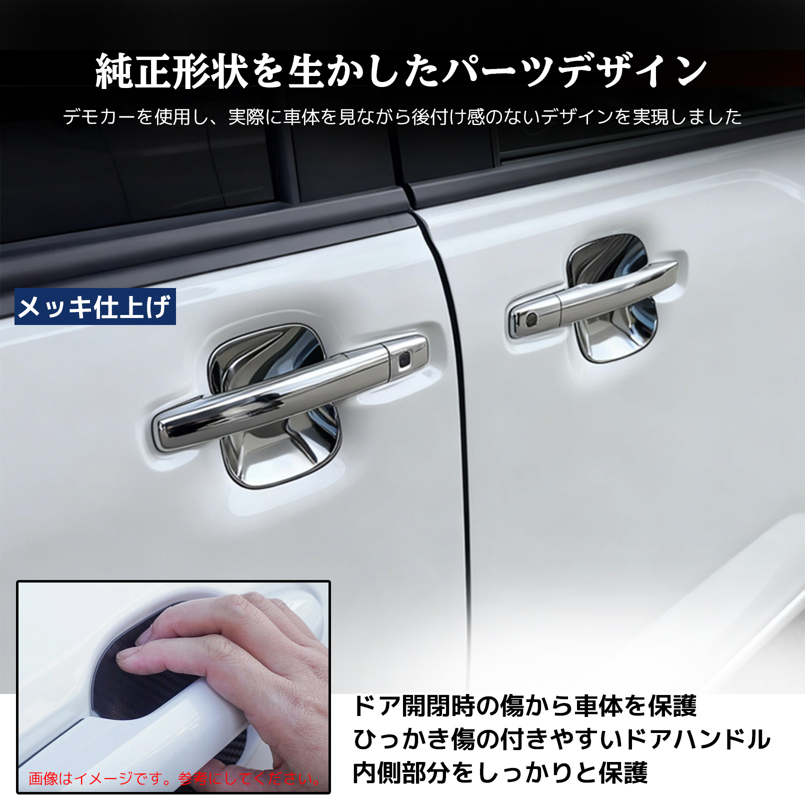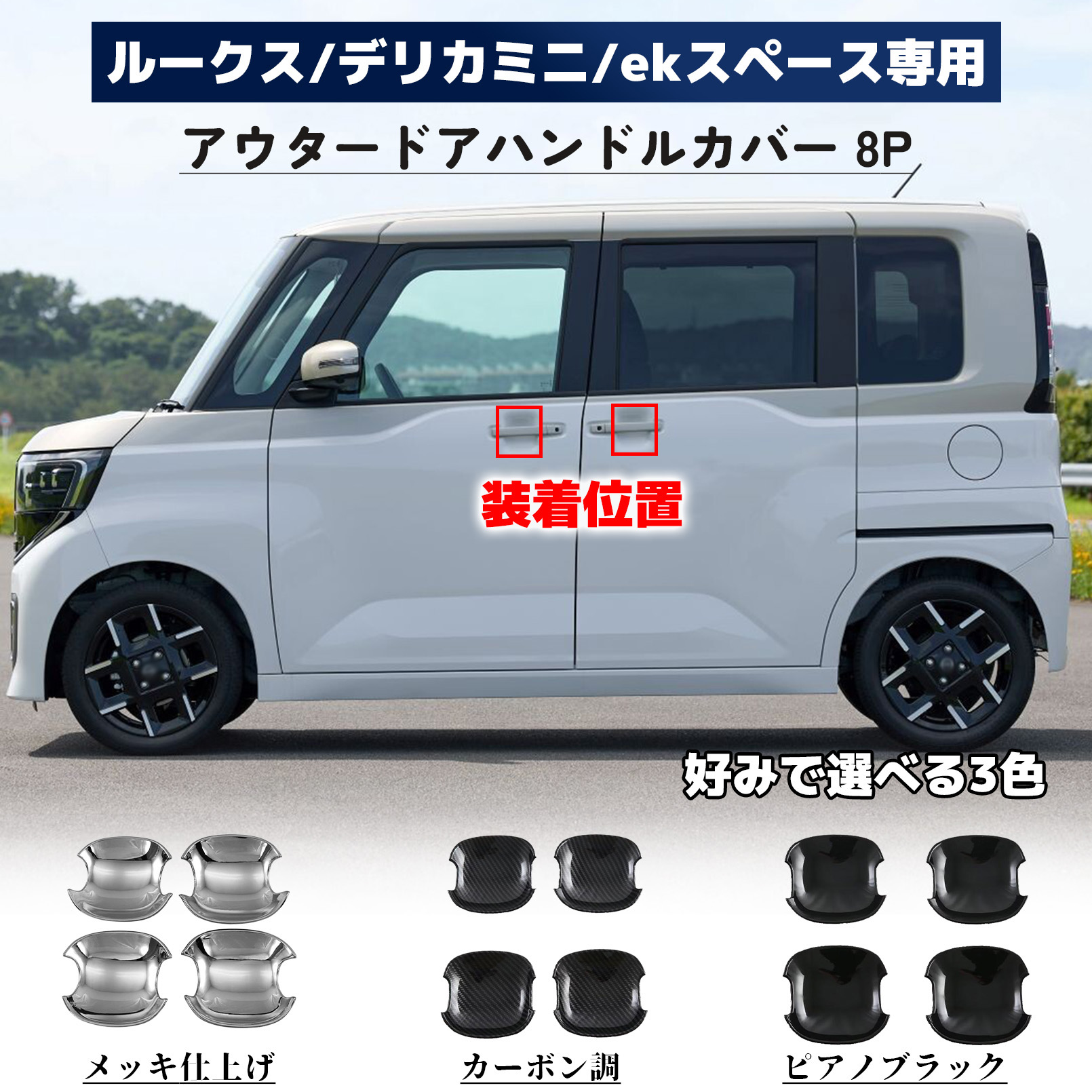 新型ルークス 新型デリカミニ 新型ekスペース パーツ ドアハンドルプロテクター プロテクションカバー ガーニッシュ 傷防止 フロント・リアセット 4P 外装