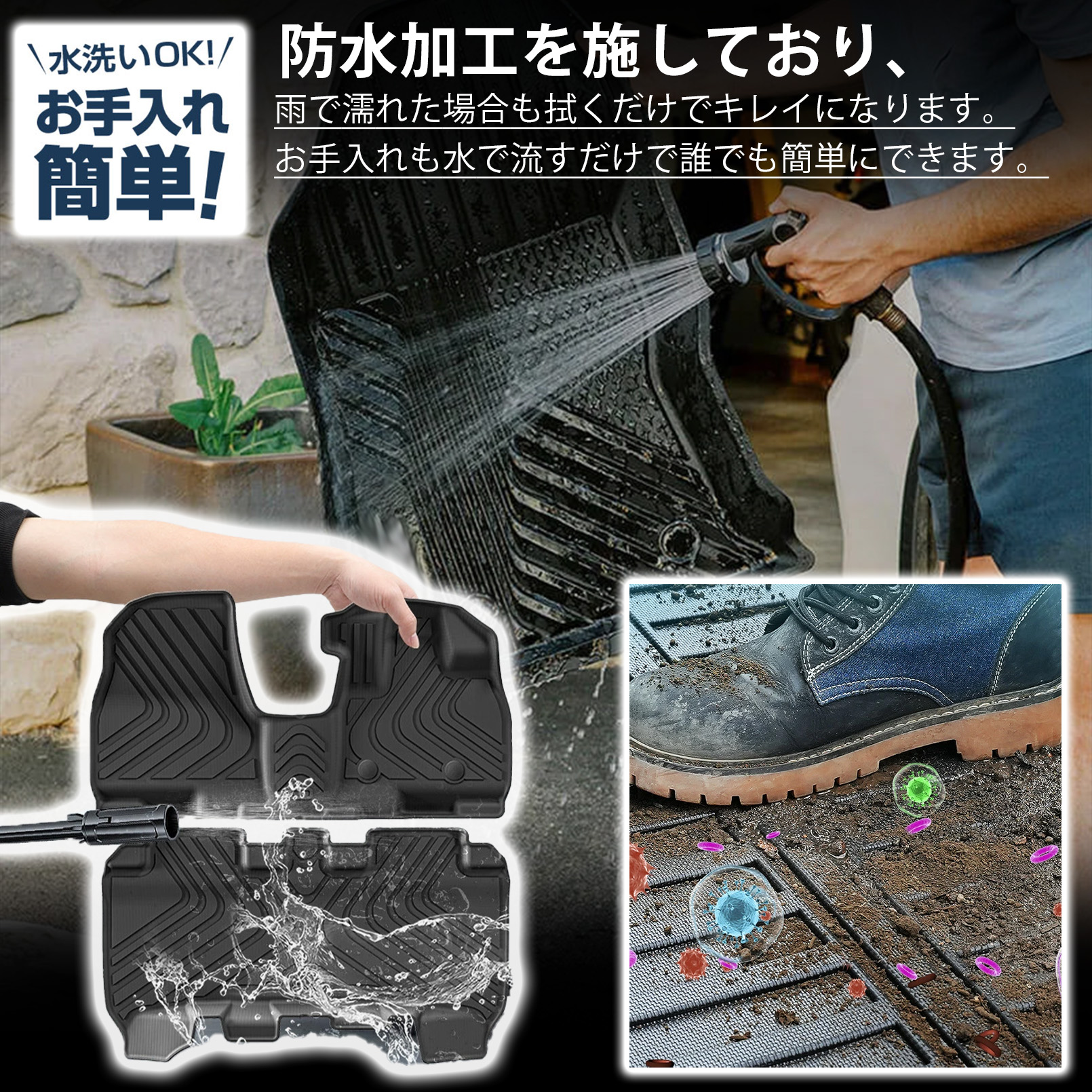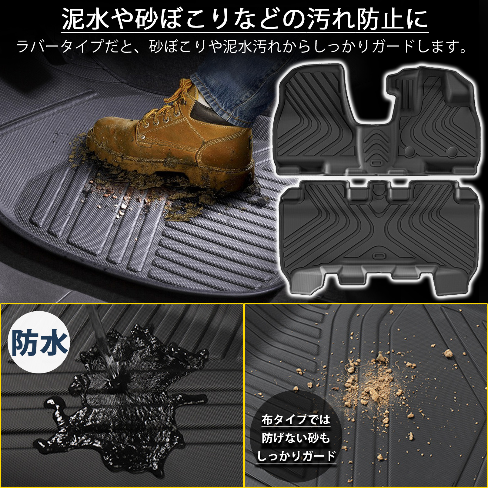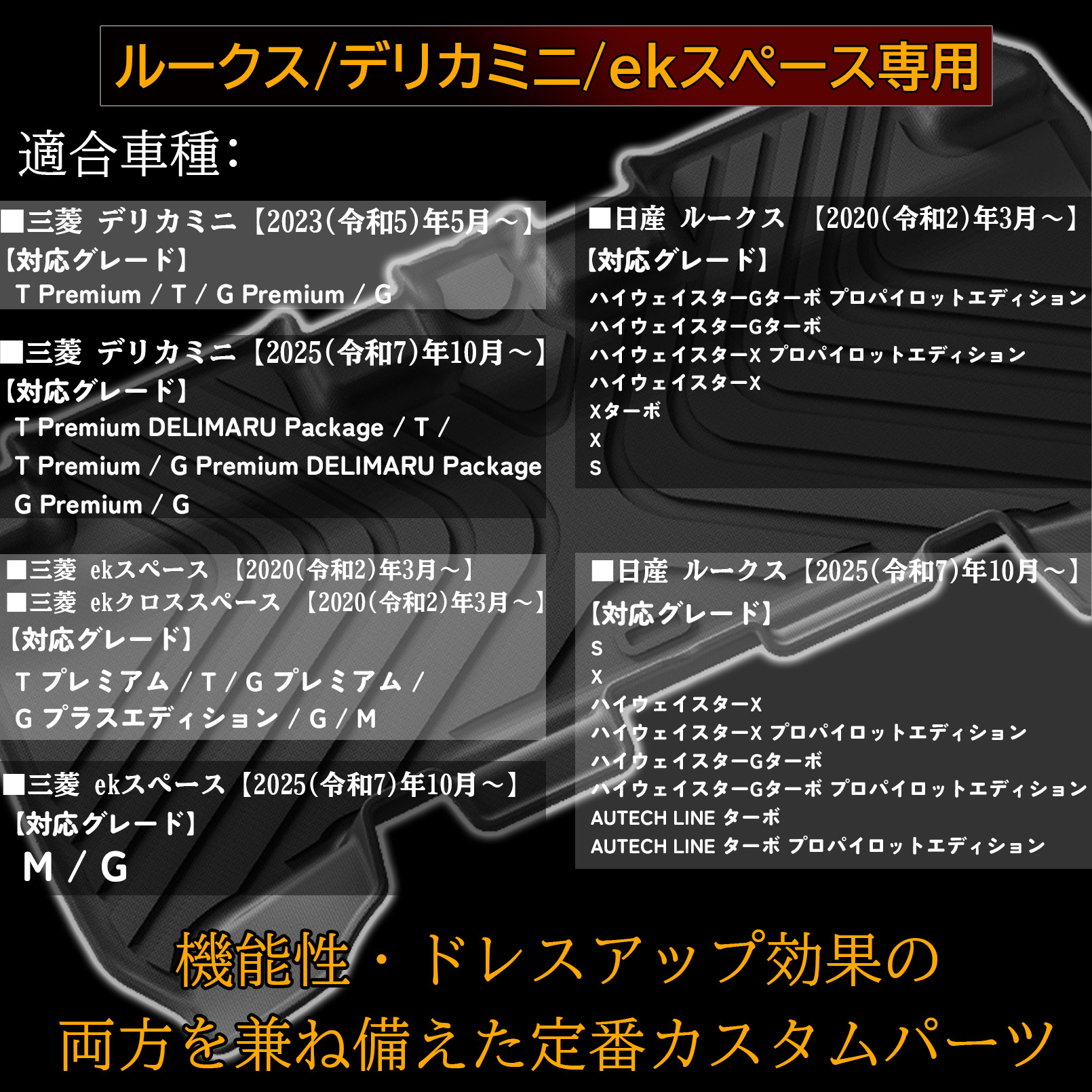 新型ルークス デリカミニ ekスペース パーツ フロアマット ラバータイプ 防水 保護 傷防止 専用 パーツ フロント リア セット 内装 カスタム アクセサリー