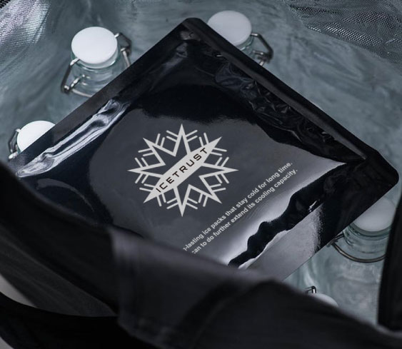 特殊低温保冷剤「アイストラスト」:液体の温度上昇を抑える特殊技術で、冷たい状態をキープ