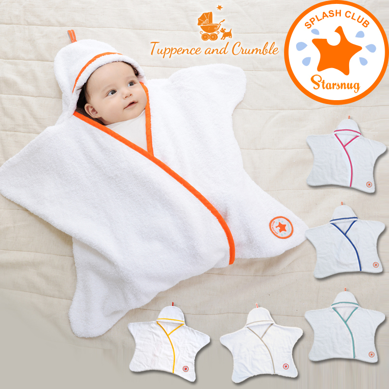 フリース素材のスターラップと同じ使いやすいデザインのタオル地バージョンは、柔らかくて厚みがあるのでバスタイムやプール、ビーチに最適のおくるみです。