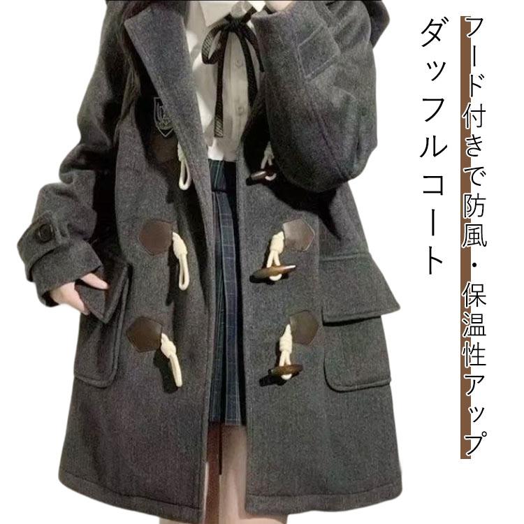 ダッフルコート 学生 レディース 無地 フード付き スクールコート アウター あったか カジュアル おしゃれ 女子 高校生 中学生 通学 秋冬コーデ