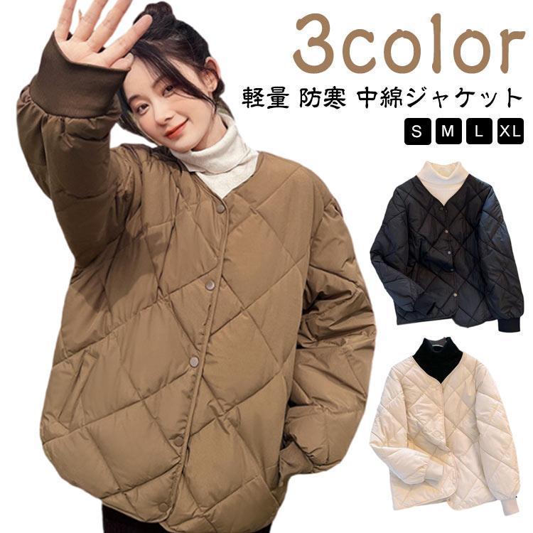 コート 中綿ジャケット レディース アウター 羽織り 上着 長袖 大きいサイズ 秋 冬 キルティング ジャケット ブルゾン ショート丈 ノーカラー 無