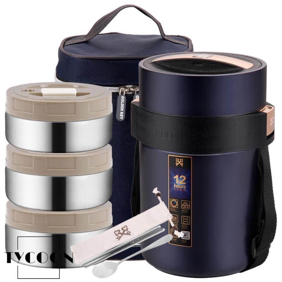 保温弁当箱 大容量 12時間の保温 ステンレス 保温ランチジャー フードジャー ポータブルお弁当箱 食器と収納バッグ付き ランチボックス フードコンテナ