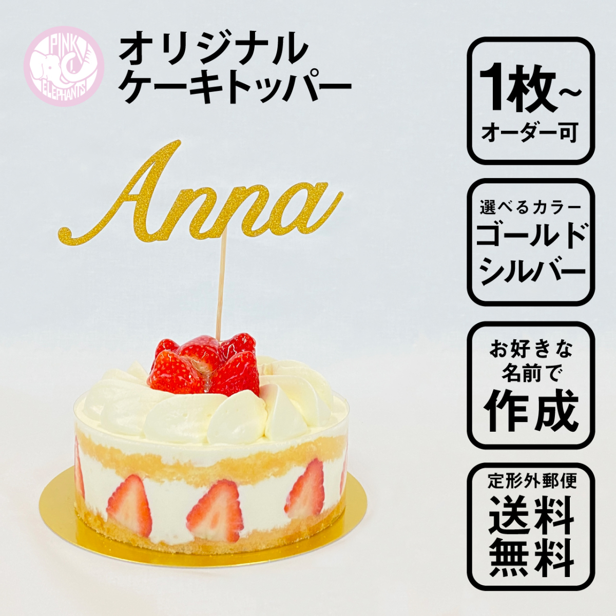 ケーキトッパー 名前入り ペーパーアイテム誕生日 ハーフバースデー キラキラ ゴールド シルバー