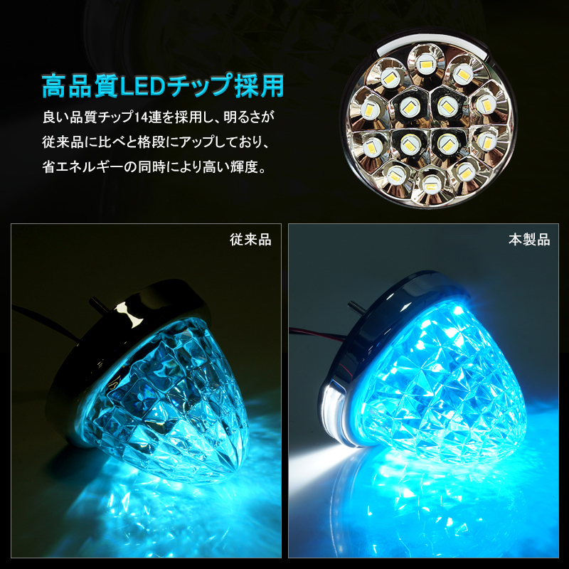 セット内容:LEDサイドマーカー・2枚セット適合車種:12V 24V汎用サイドマーカー:14連SMDLED路肩灯:8連SMDLEDチップ:5630(サイドマーカー)&3014(路肩灯)発光色:アイスブルー防水:IP67