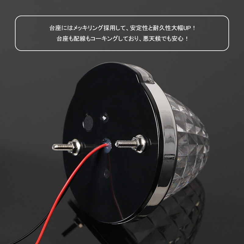 台座にはメッキリング採用して、安定性と耐久性大幅UP! 台座も配線もコーキングしており、悪天候でも安心!