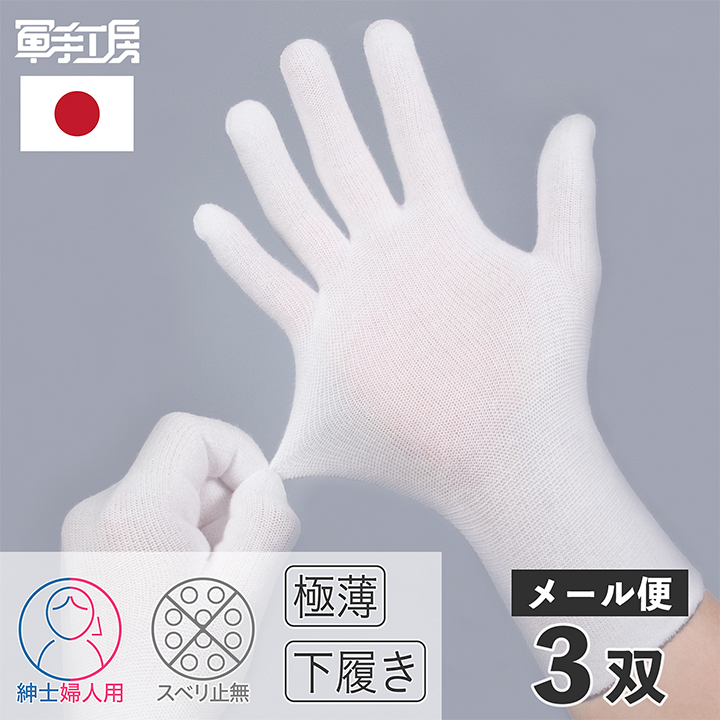 【手袋の下着 下履き手袋】【高品質 日本製】3双組 インナー手袋 ゴム手袋の下履き おやすみ手袋 精密作業にも 【10万円でできるかなで紹介されました】