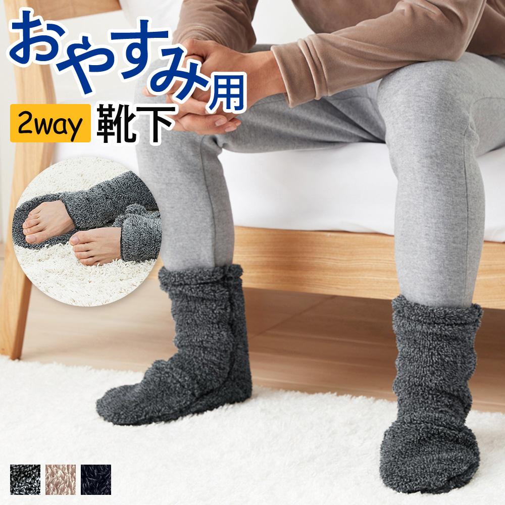 グンゼ ルームソックス メンズ 秋冬 おやすみ用 2way つま先開閉可 冷え対策 靴下 裏起毛 GUNZE 25-27cm AUQ361