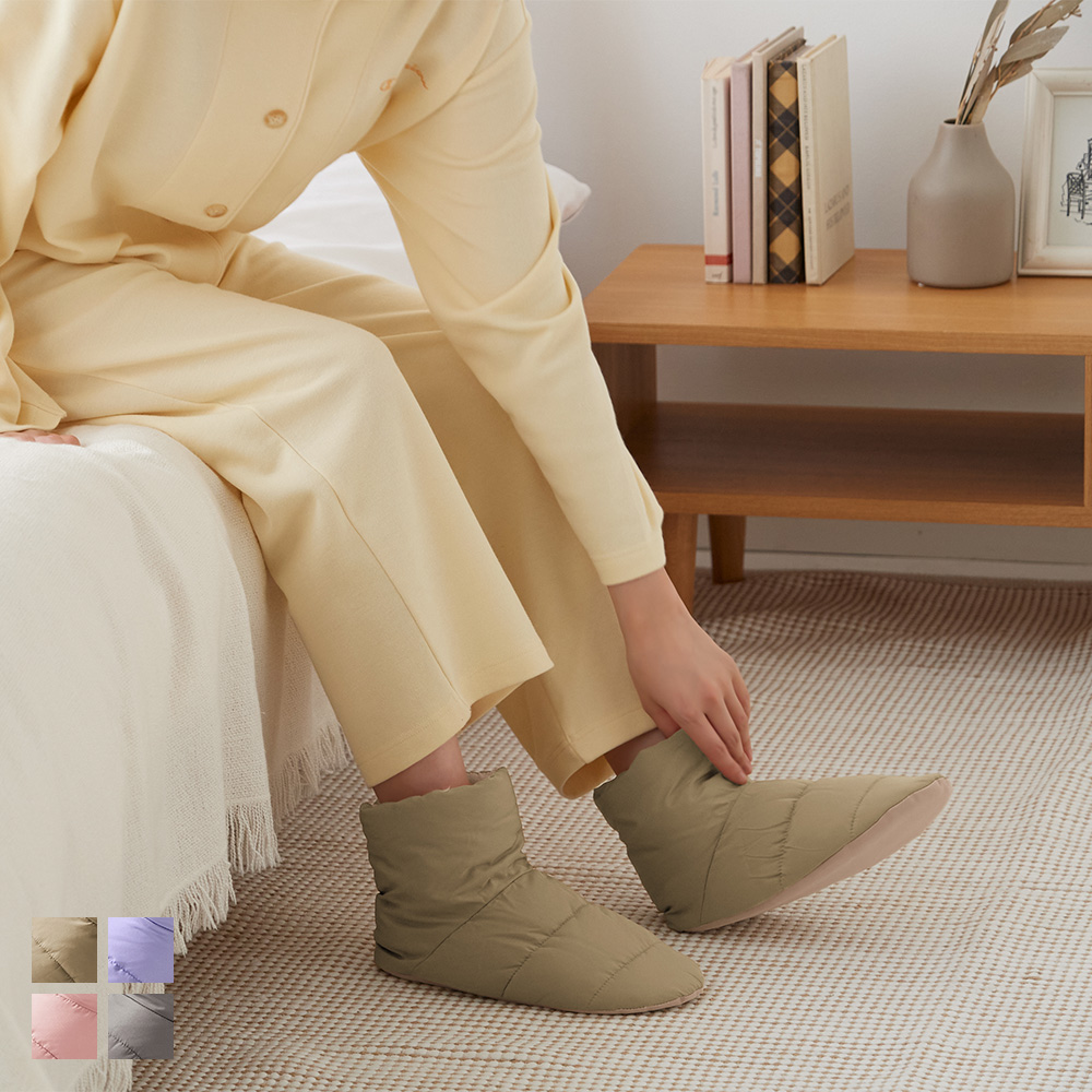 ◆素材◆表地・裏地:ポリエステル100%、中わた:ポリエステル90%・合成繊維(アクリレート系)10%、足底:ポリエステル100%(ポリウレタンコーティング)