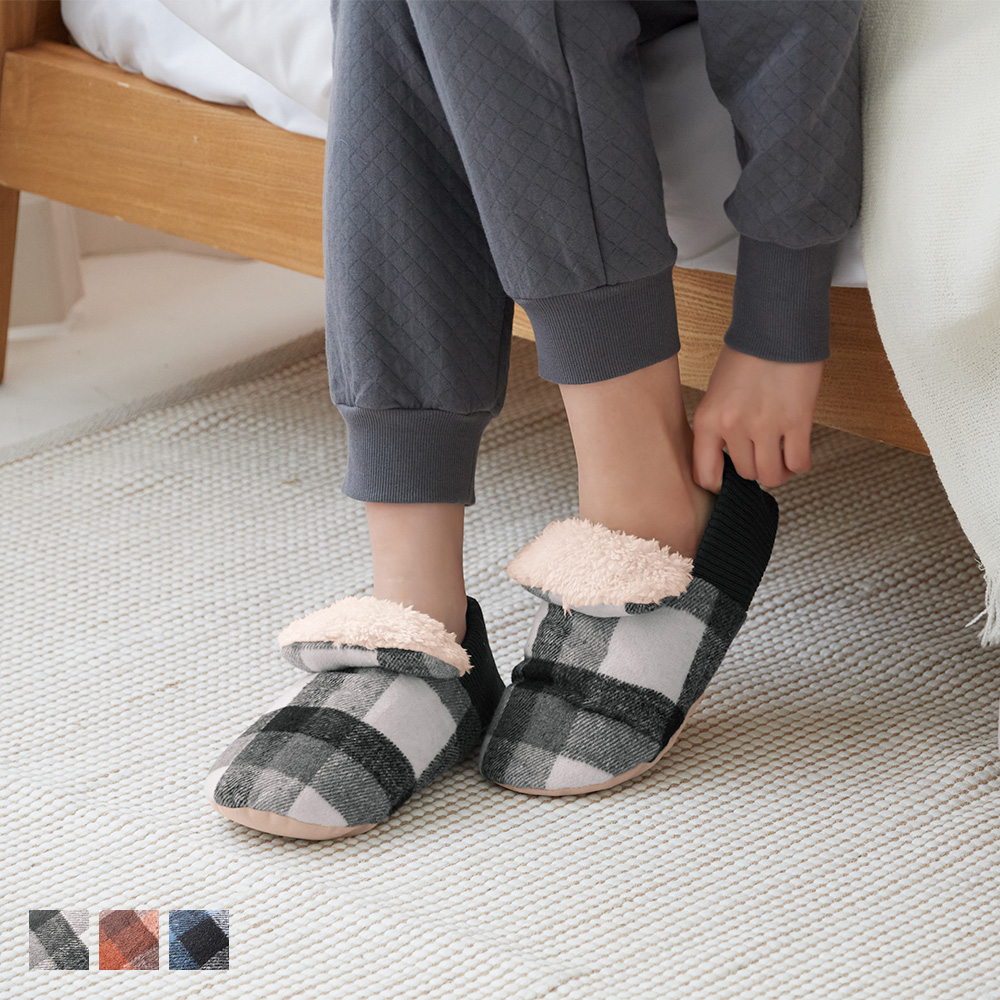 グンゼ ルームシューズ レディース バブーシュ スリッパ ルームブーツ バウンドヒーター 吸湿発熱 消臭 秋冬 ボア チェック柄 ウチコレ AUY503 23-25
