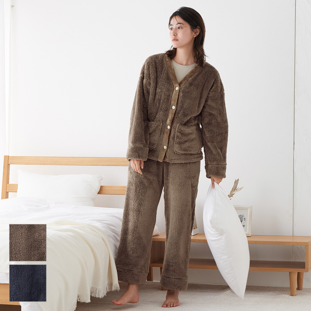 グンゼ レディース ルームウェア セットアップ ボア ドロップショルダー 寝返りしやすい 背中が出にくい ポケット付き 秋冬 防寒 暖か ウチコレ AUY903 M L