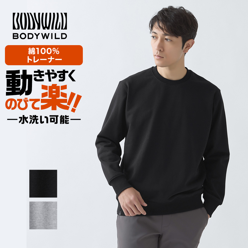 グンゼ ボディワイルド トレーナー メンズ 洗える 秋冬 カジュアル 綿100% コットン 裏毛 セットアップ ピスネーム アウター BODY WILD M L 紳士 男性 BDW364