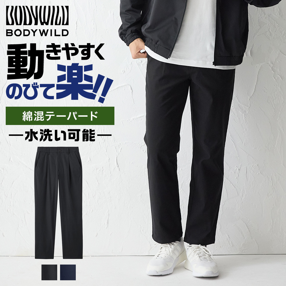 グンゼ ストレート パンツ メンズ ストレッチ ボトムス パンツ 前タック 前あき 布帛 綿 ベルトループ 年間 通勤 GUNZE BODYWILD M L LL BDY45K