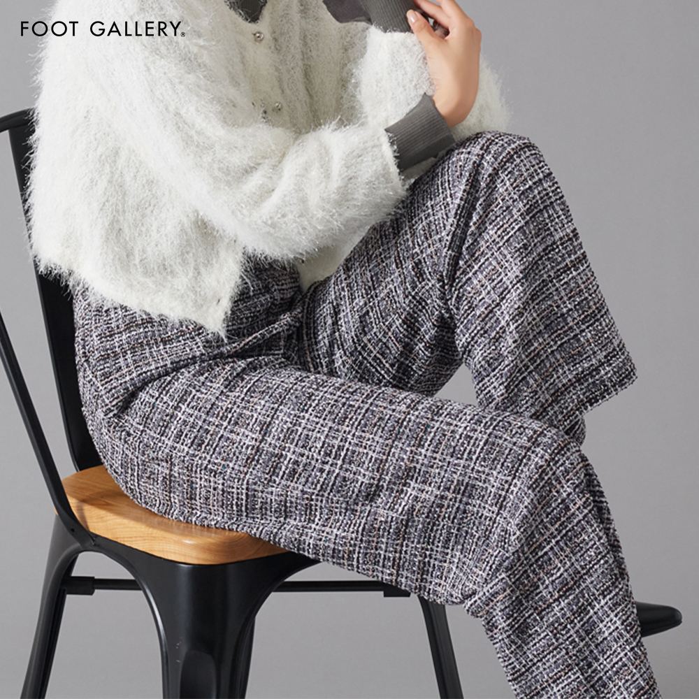 グンゼ ツイード調 2WAY ストレッチ ワイドパンツ 秋 冬 レディース セミワイド ウエストゴム ポケット付 前とじ 洗濯可 フットギャラリー GUNZE M L FTYL23