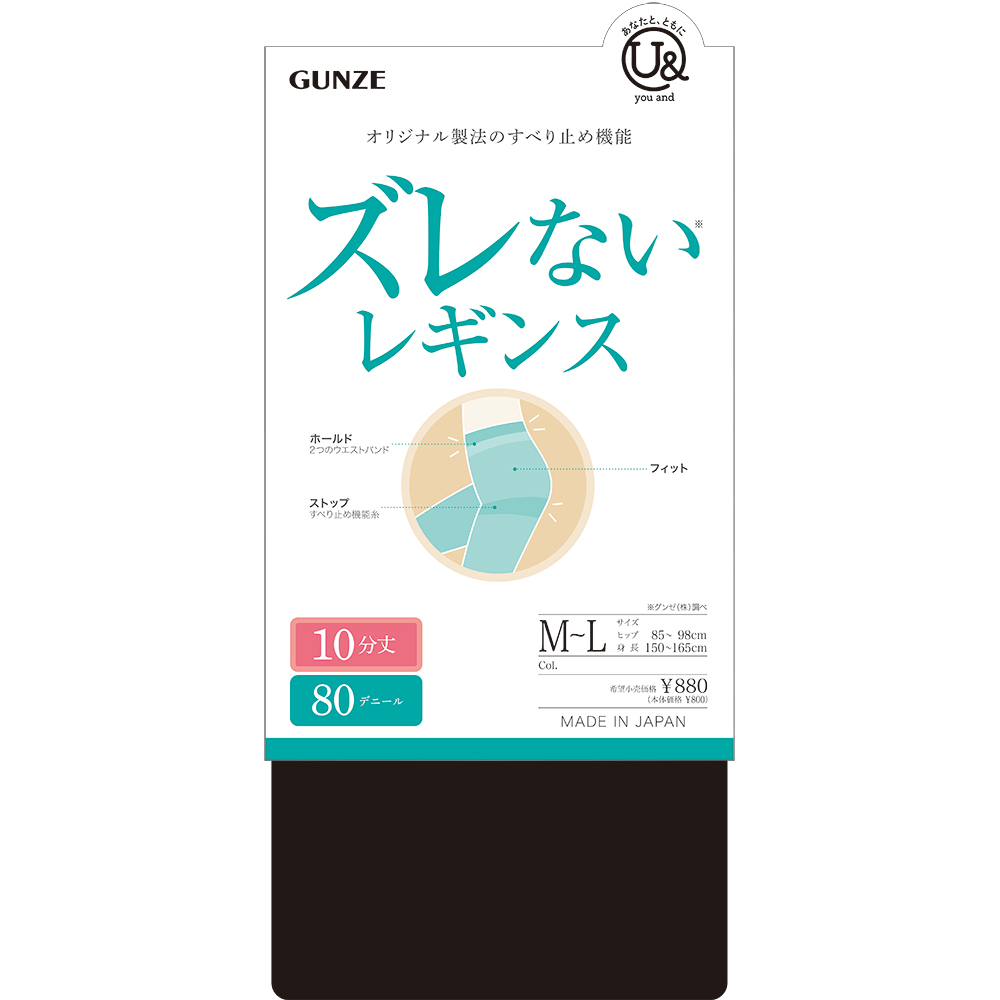 グンゼ レギンス レディース 秋冬 ズレない すべり止め機能 立体設計 80d 10分丈 GUNZE youand M-LL YAF080