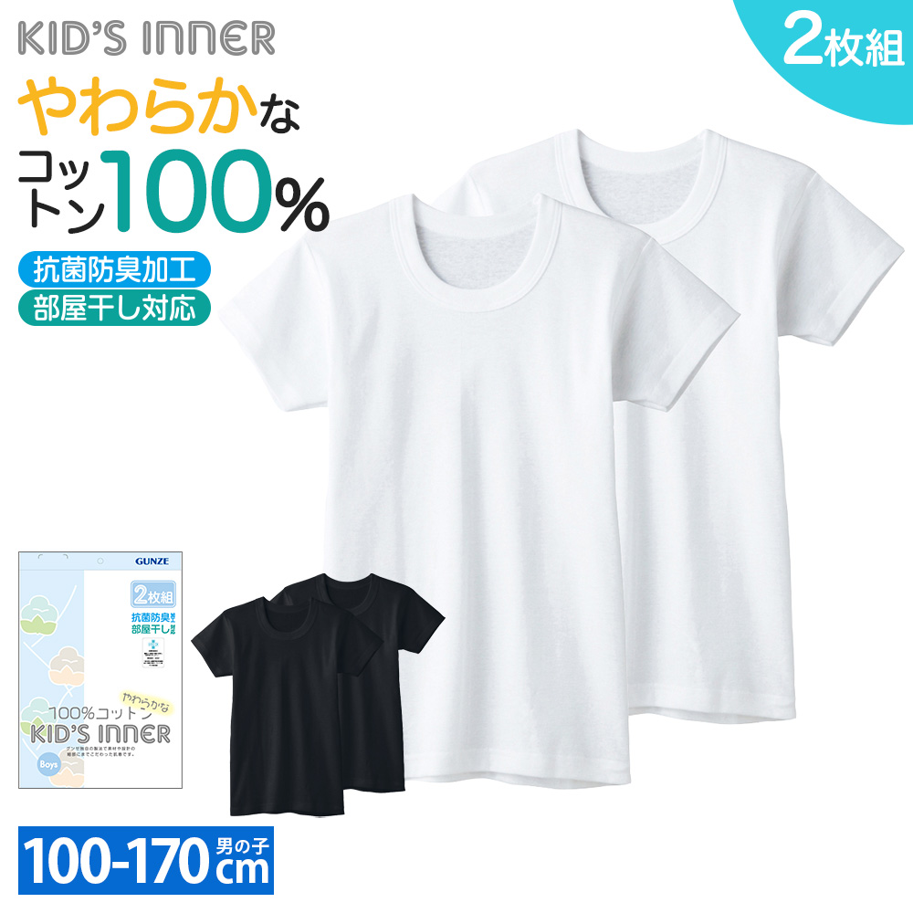 グンゼ 半袖シャツ セット 2枚組 キッズ ボーイズ 子供 男の子 年間 肌着 下着 インナー 抗菌防臭加工 部屋干し対応 綿100% 無地