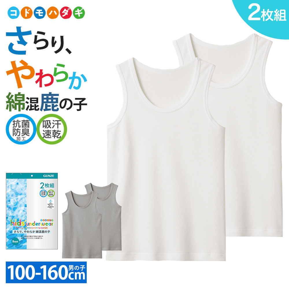 グンゼ ランニング 2枚組 キッズ ボーイズ 子供 男の子 春夏 肌着 下着 インナー 抗菌防臭加工 吸汗速乾 綿混 鹿の子 無地