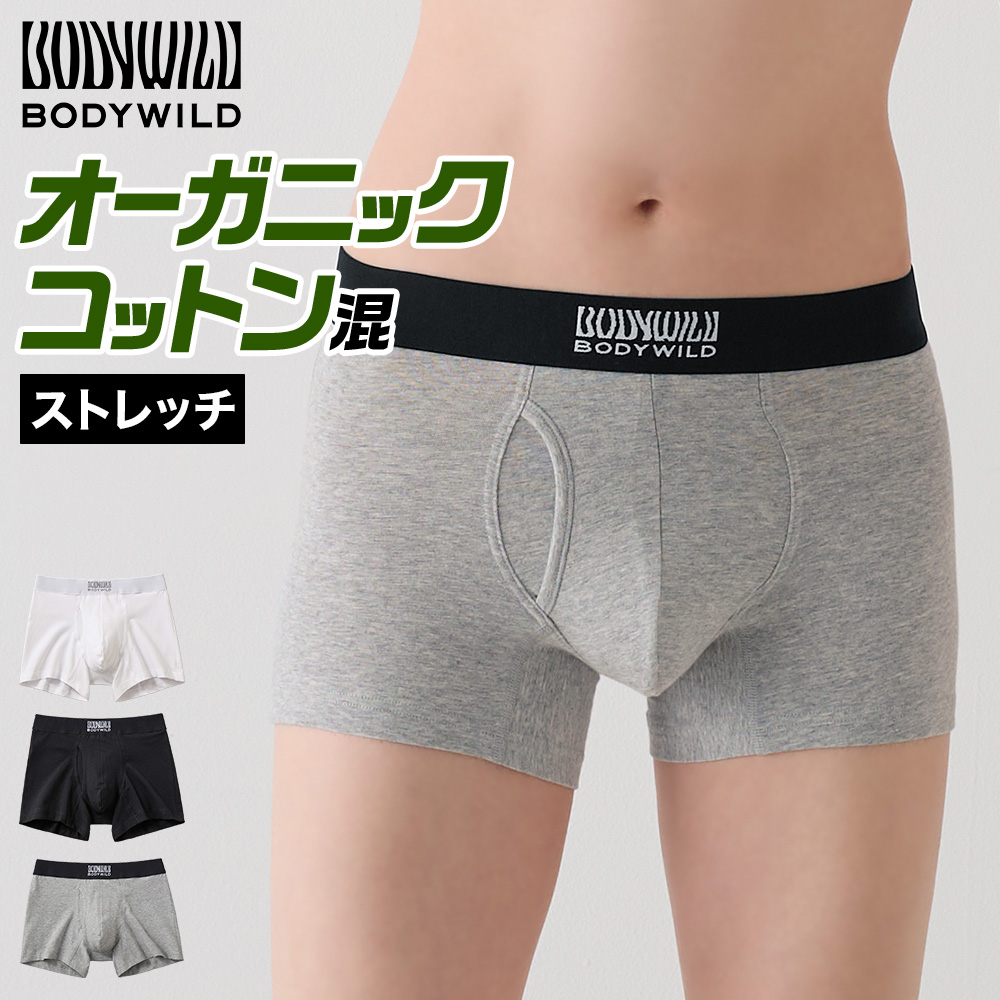 グンゼ ボディワイルド ボクサーパンツ 前あき メンズ 綿混 オーガニックコットン混 下着 ボクサー パンツ 前開き GUNZE BODYWILD BWL301A