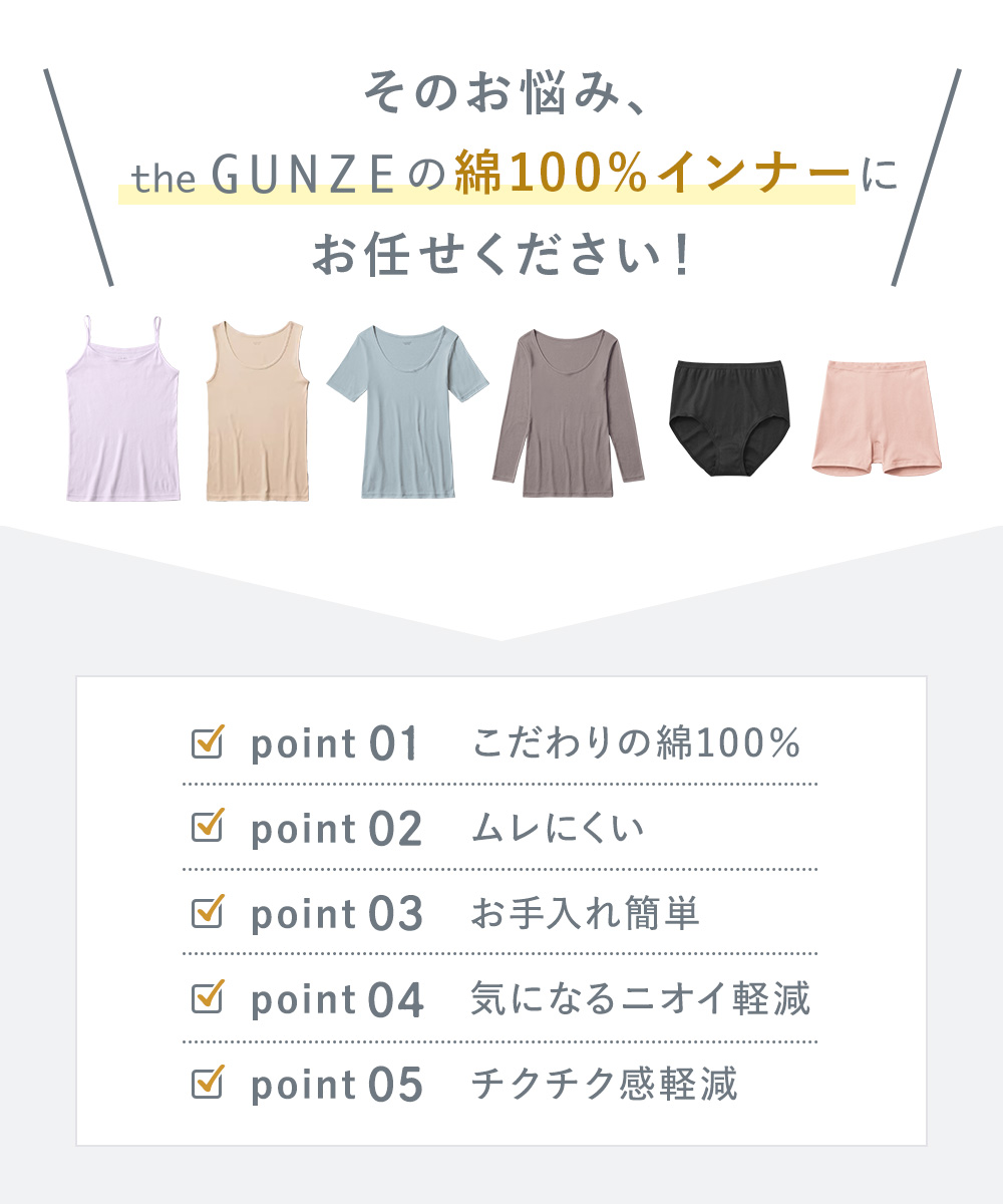 お肌にずっと触れるものだから、「the GUNZE」は日本製、天然素材・天然由来と着心地の良さにこだわり、1枚1枚まごころを込めて丁寧に作りました。
