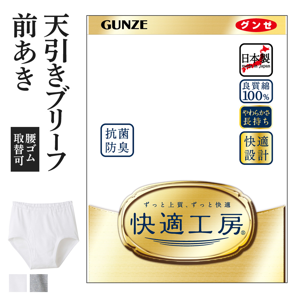 グンゼ 快適工房 メンズ 天引きブリーフ 前開き 綿100% 抗菌防臭 日本製 下着 無地 通年 男性 紳士 高齢者 GUNZE
