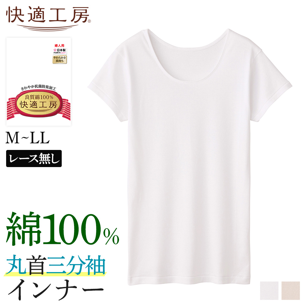 グンゼ 快適工房 肌着 インナーシャツ レディース 綿100% 半袖 3分袖 通年 下着 婦人 女性 GUNZE 丸首三分袖スリーマー KQ5251 M-LL