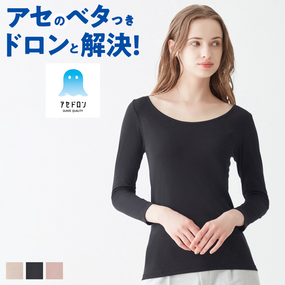 グンゼ GUNZE アセドロン 長袖 レディース 汗ジミ防止 吸汗速乾 放湿 ムレ 消臭 女性 婦人 下着 肌着 インナー 8分袖 汗対策 シンプル 定番 MC0046P M-LL