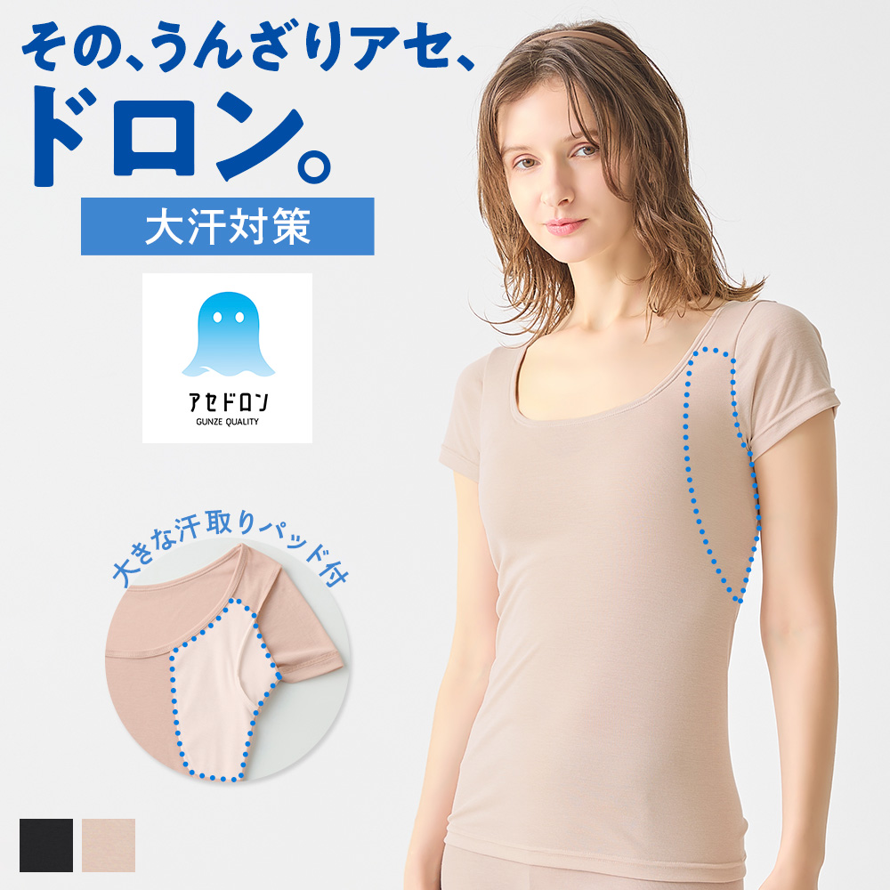 グンゼ アセドロン 半袖 レディース 脇汗 汗取りインナー 夏 パッド付き 大汗 ムレ ベタつき 2分袖 トップス GUNZE MC1051P