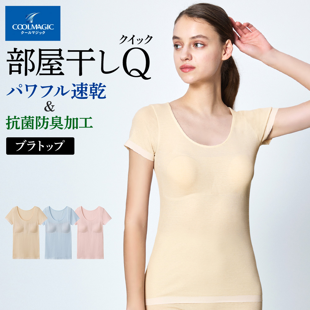 グンゼ GUNZE クールマジック COOLMAGIC 2分袖インナー パッド付 レディース 春夏 インナーシャツ 綿混 半袖 下着 ブラトップ 部屋干し 吸汗速乾