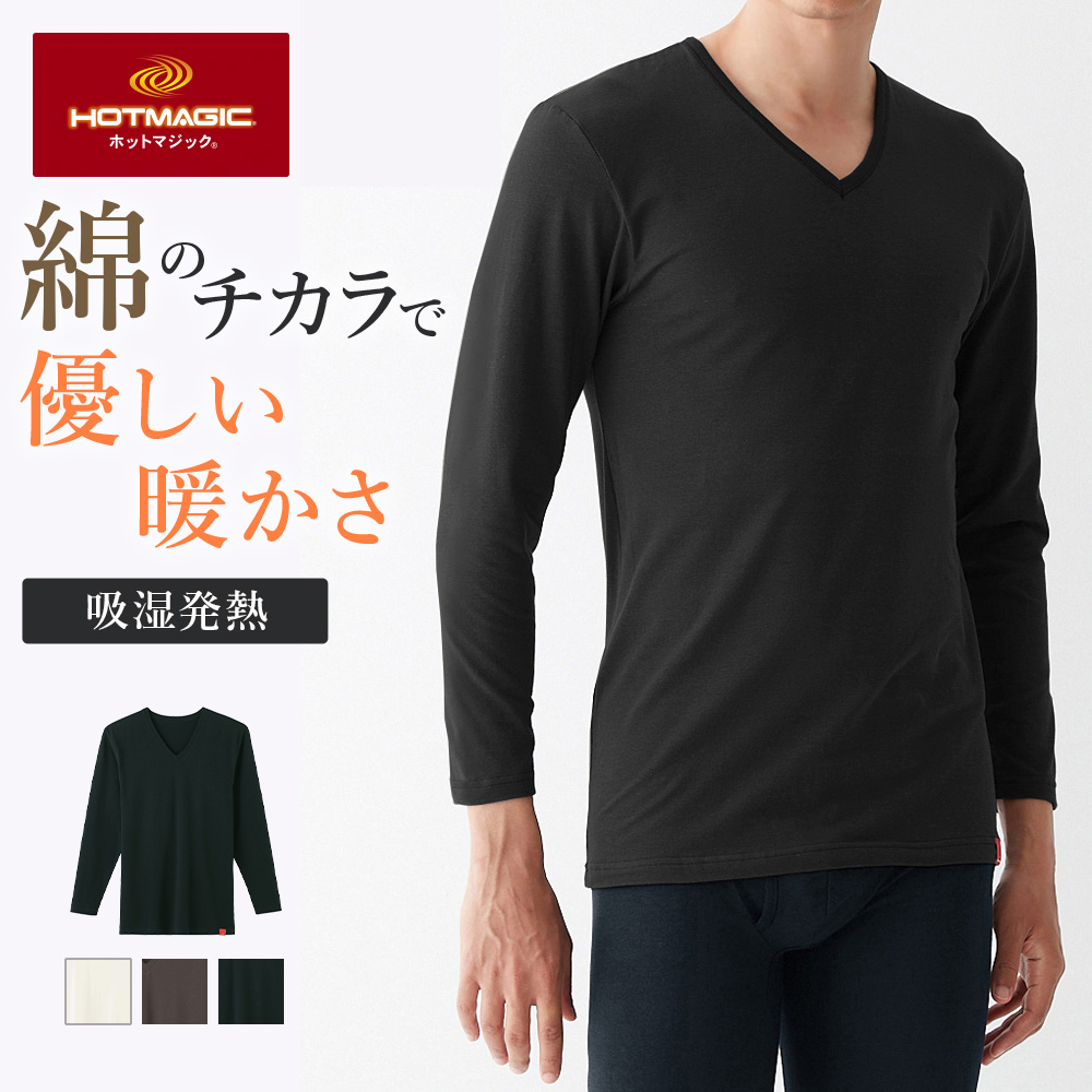 グンゼ 肌着 下着 インナー 男性 メンズ Vネック 長袖シャツ 秋冬 綿 V首 長袖 綿のチカラ HOTMAGIC MHA109B M L LL