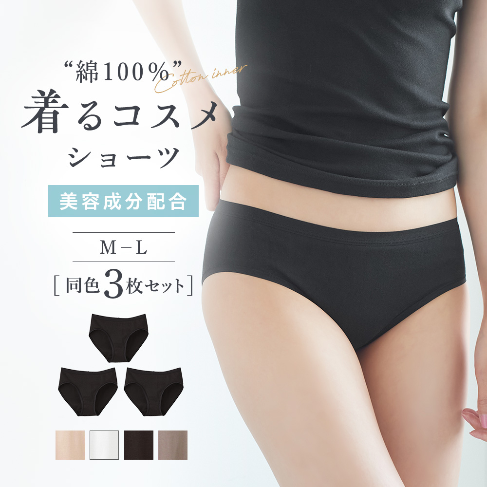 天然美容成分を配合した、女性に嬉しい綿100%ショーツの3枚組です。