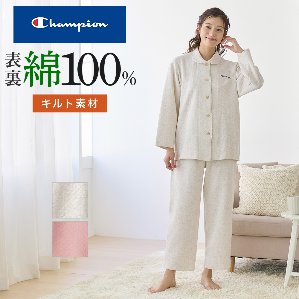 Champion チャンピオン パジャマ レディース 表裏 綿100% キルト 冬用 女性 長袖 長パンツ グンゼ M L LL OD8874