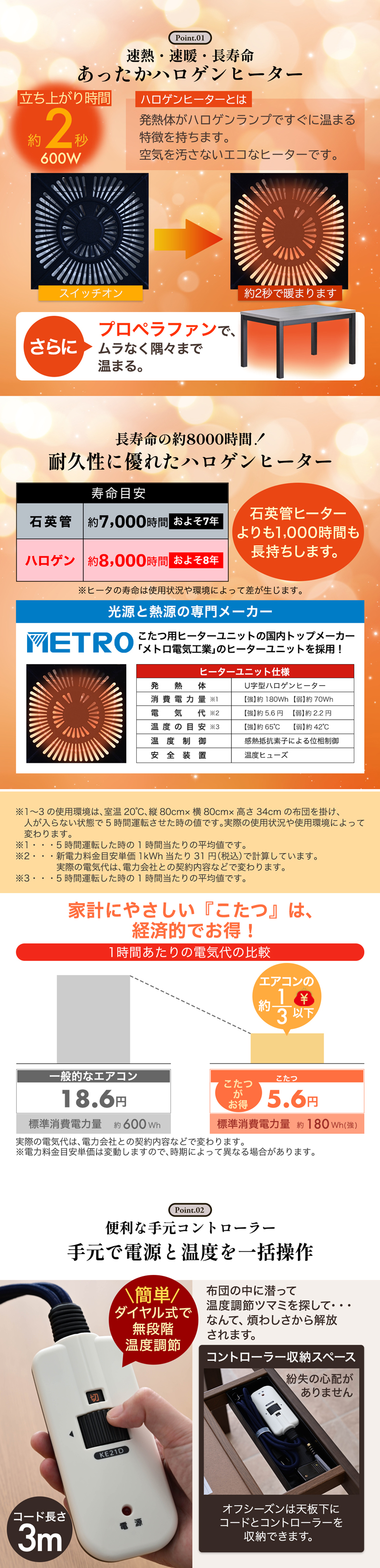 ・手元コントローラー付でオン・オフ&温度調節簡単♪