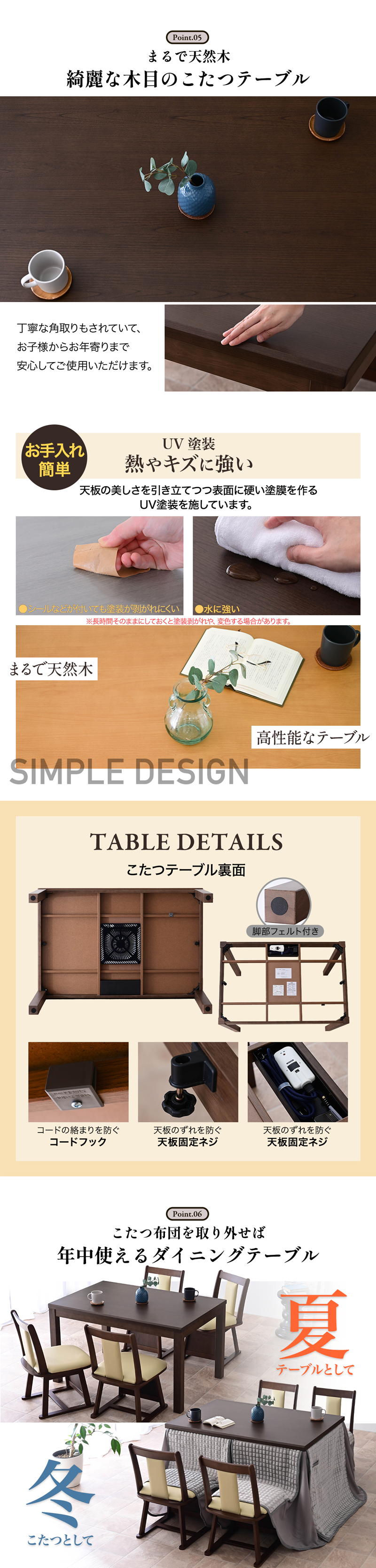 ・椅子にすわったままこたつ生活できるダイニングこたつ。