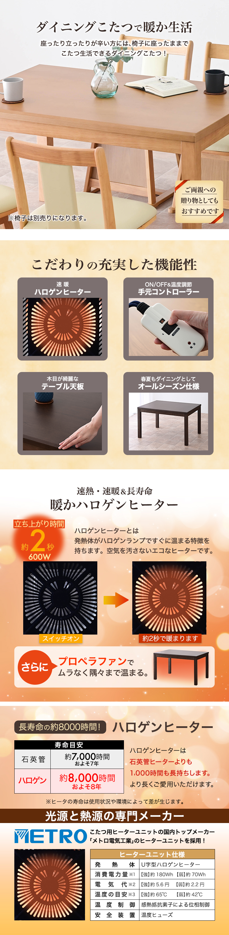 ・速暖2秒!600Wハロゲンヒーターを採用。