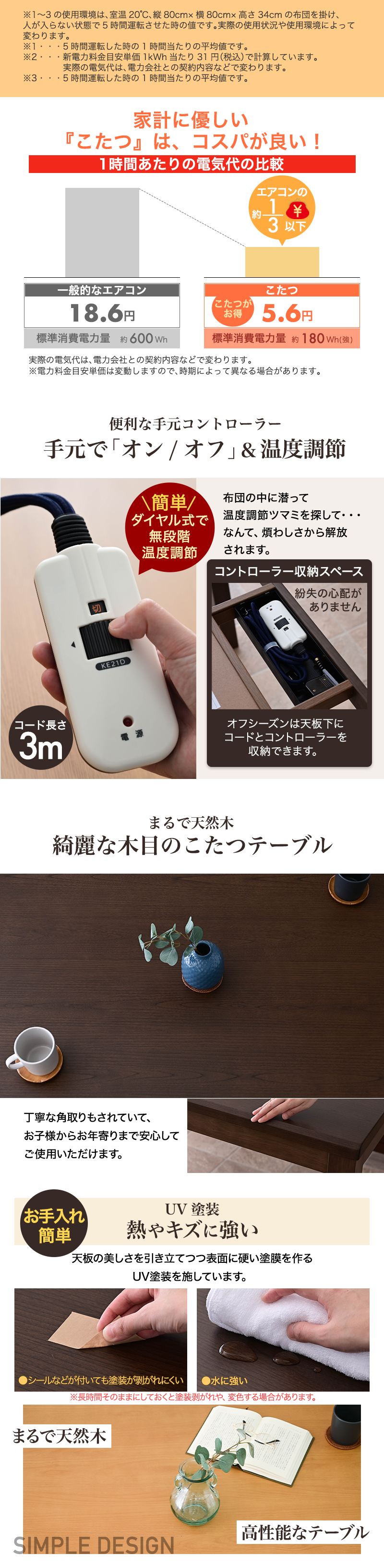 ・手元コントローラー付でオン・オフ&温度調節簡単♪