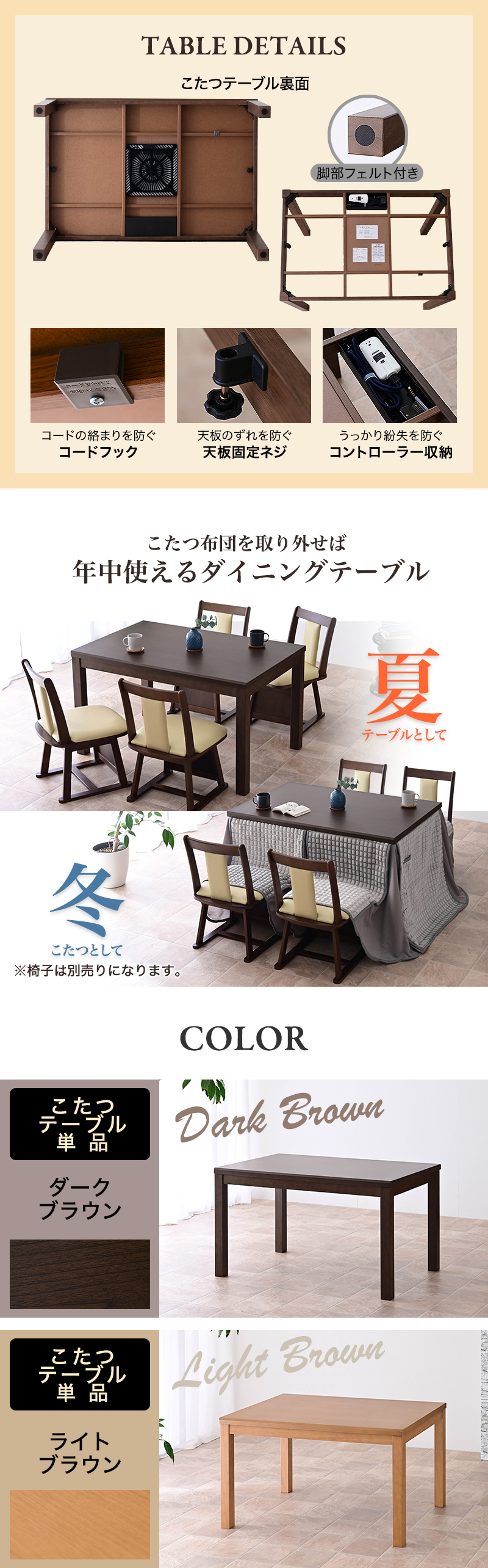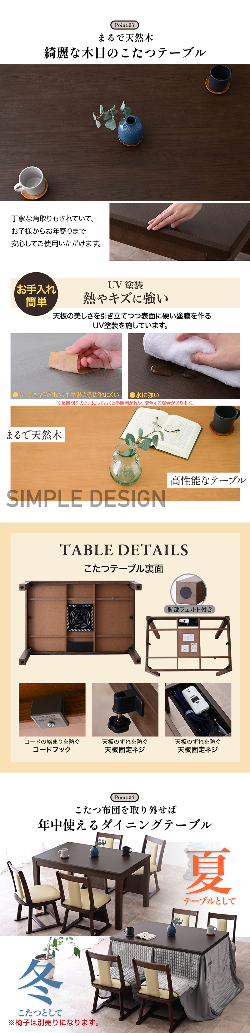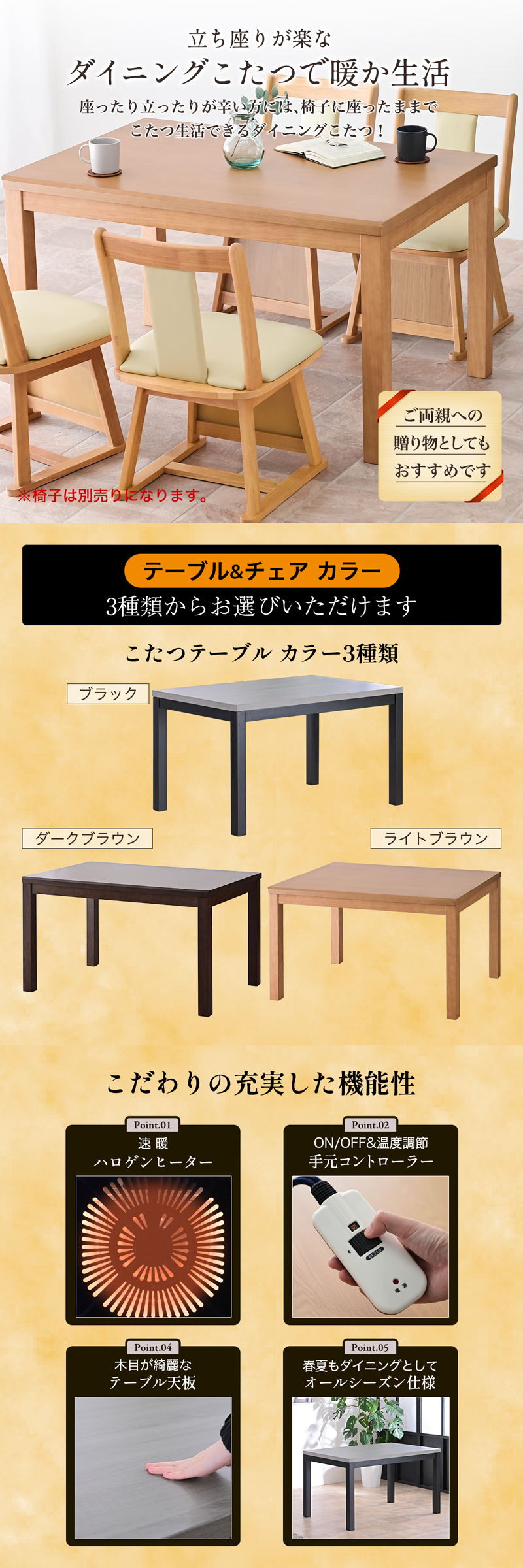 ・椅子にすわったままこたつ生活できるダイニングこたつ。