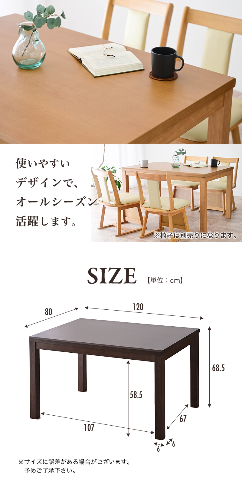 幅120×奥行80×高さ68.5cm