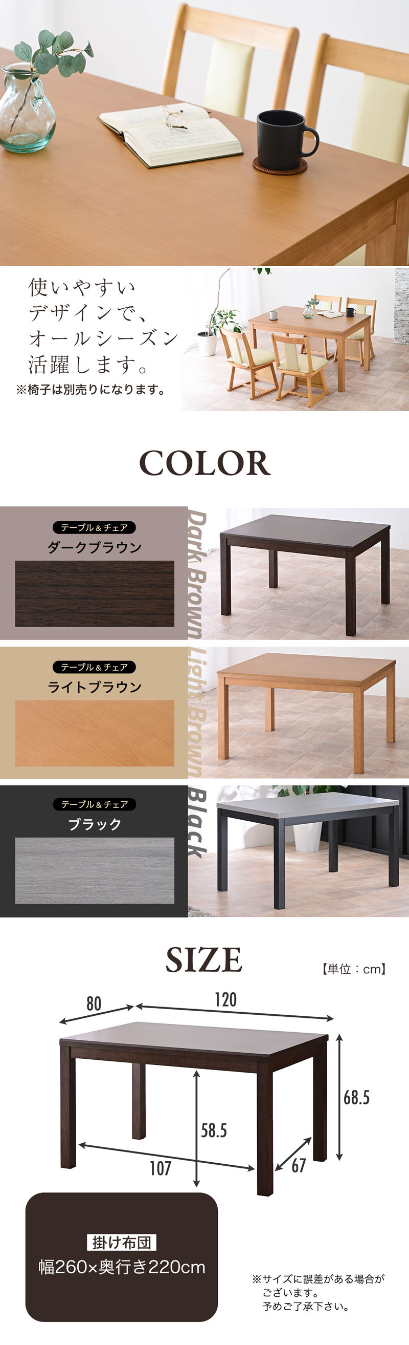 ハイタイプ こたつ kotatu単品 幅120cm 長方形 ハイタイプこたつ ダイニングこたつ ダイニング テーブル コタツ 幅 120 cm 幅120 120cm 120×80cm 人気