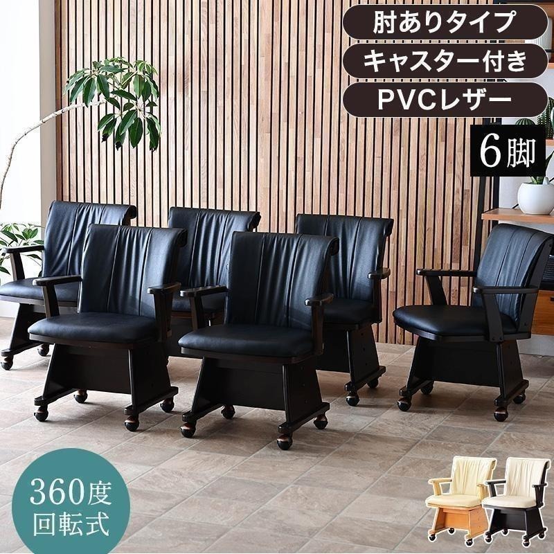 こたつ用 椅子 6脚セット 回転 木製 肘付き キャスター付き 回転椅子 回転チェア 6脚 肘掛 ダイニングチェア こたつチェア イス 肘付 キャスター