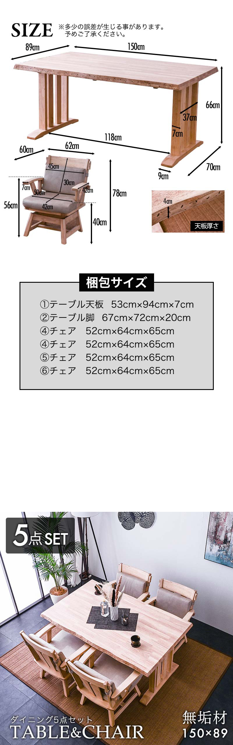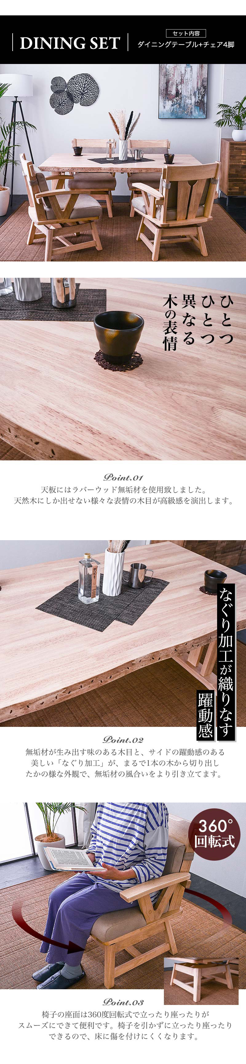 150幅 ダイニングテーブルセット 無垢 幅150cm 4人 5点セット ダイニングセット ダイニングチェア 食卓セット 椅子4脚 回転椅子 和モダン 天然木st10-9d