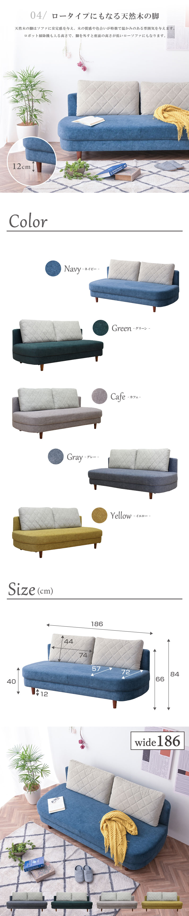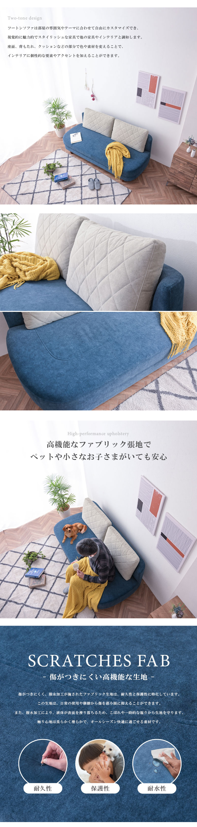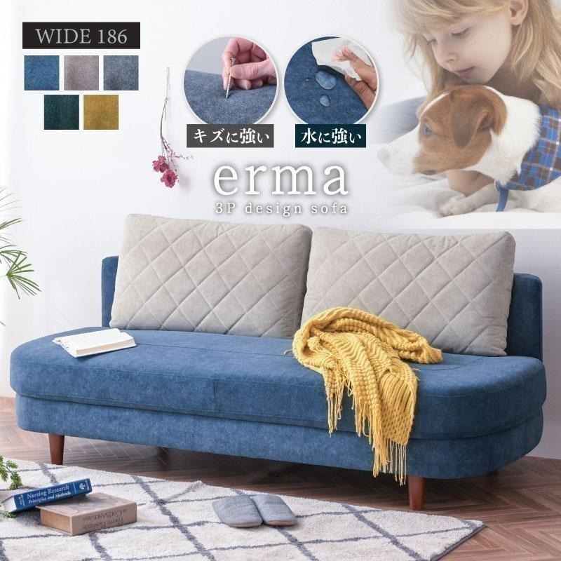 幅186cm 傷に強い ペット対応 ソファ 3人掛け ソファー ファブリック 3人掛けソファー 3P 犬 猫 2人掛け 2P 三人掛け 二人掛け コンパクト 肘なし かわいい