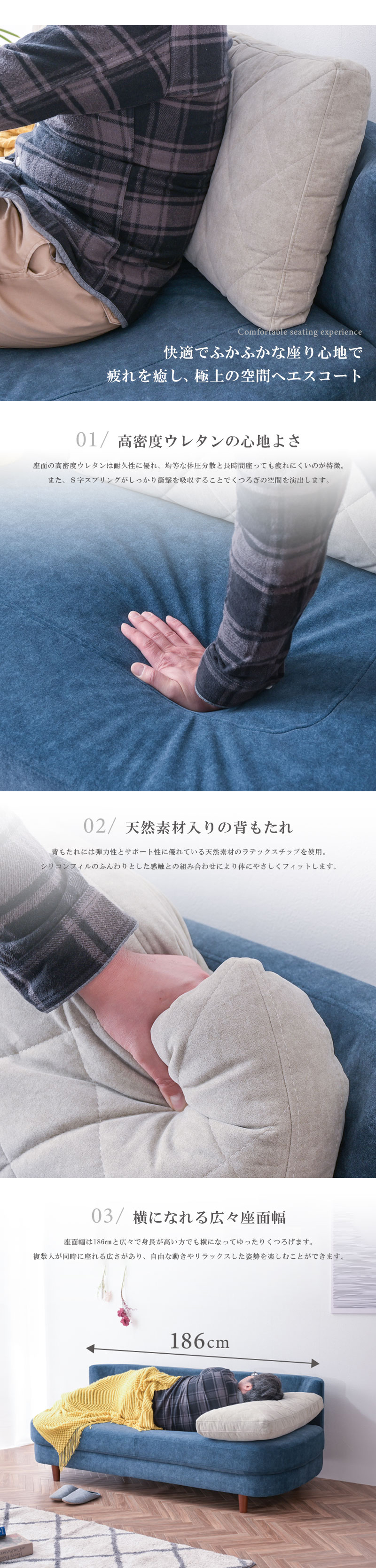 ファブリック、高密度ウレタン、シリコンフィル、ラテックスチップ(天然ゴム錦)、S字スプリング、天然木脚