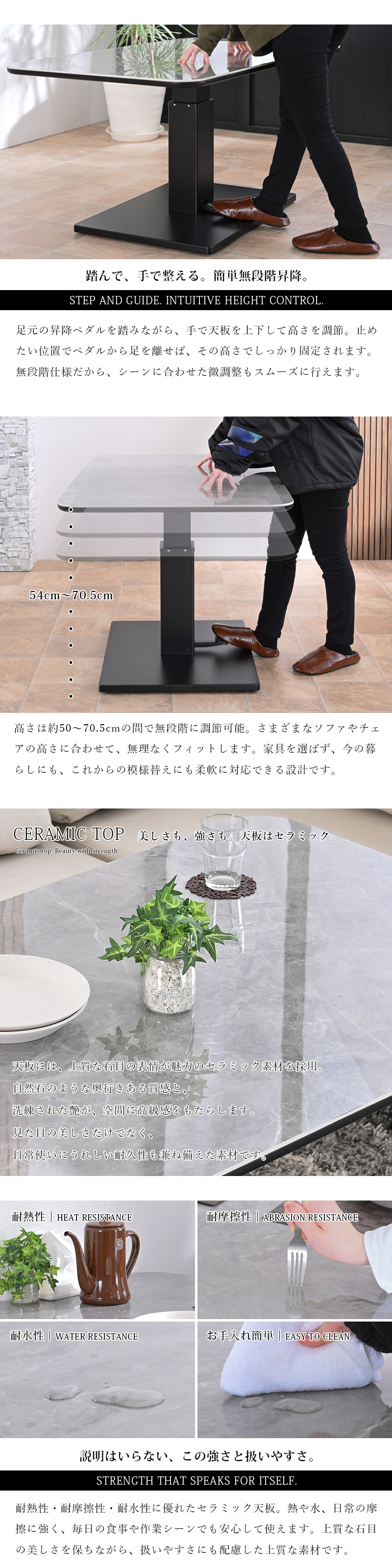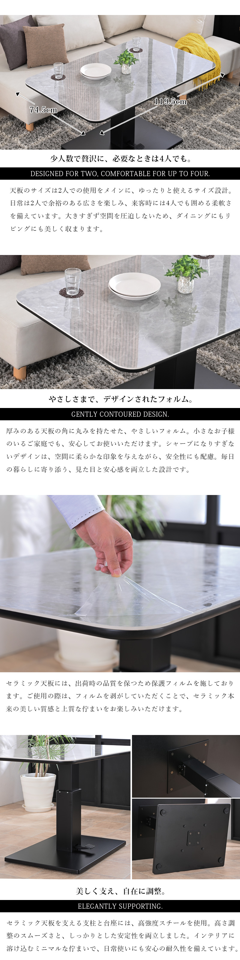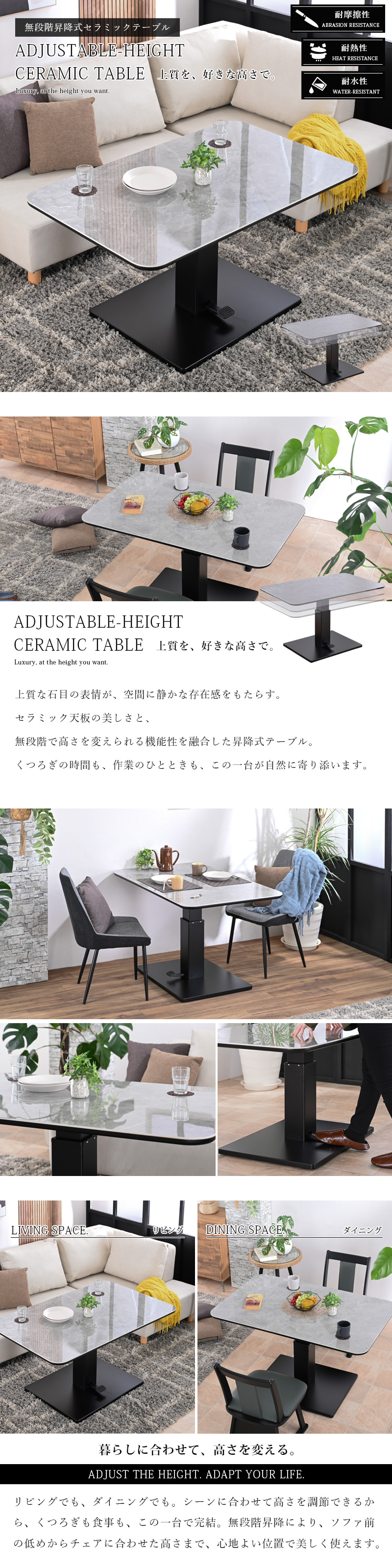・リビングでもダイニングでも活躍するセラミック昇降式テーブル