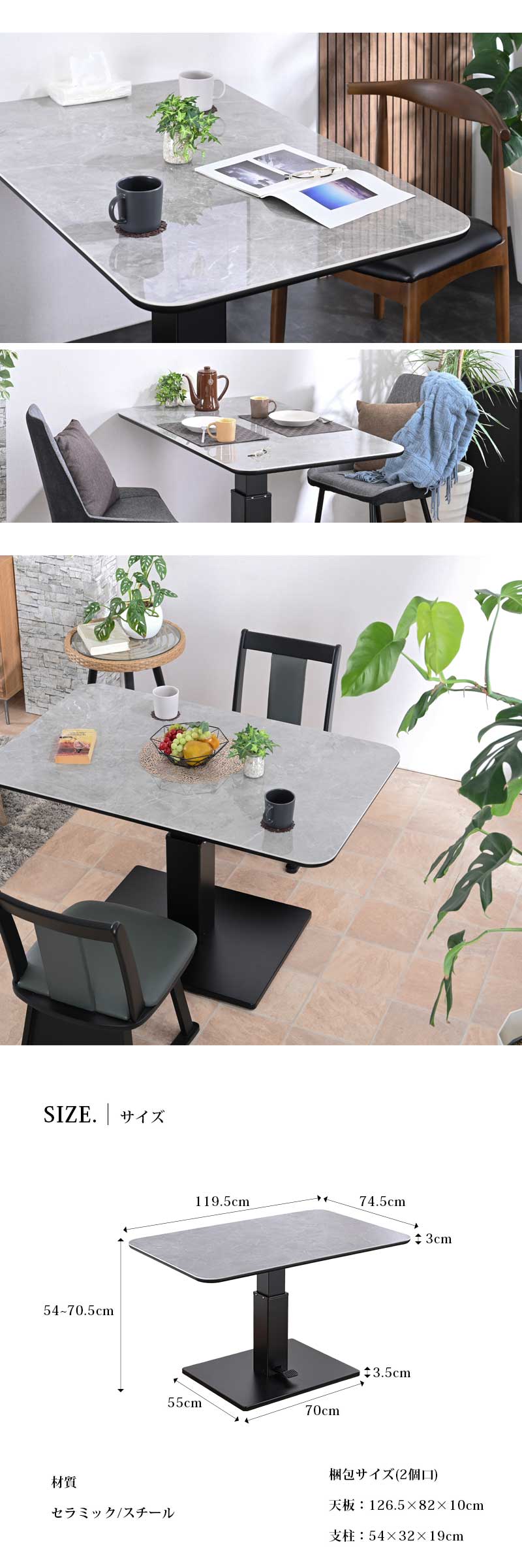 昇降テーブル 昇降式テーブル 昇降 昇降式 テーブル 幅 120 120cm セラミック天板 ダイニングテーブル ペダル式 高さ調節 無段階 広い st19-9d 【玄関渡し】